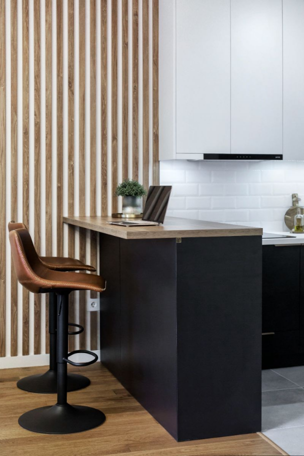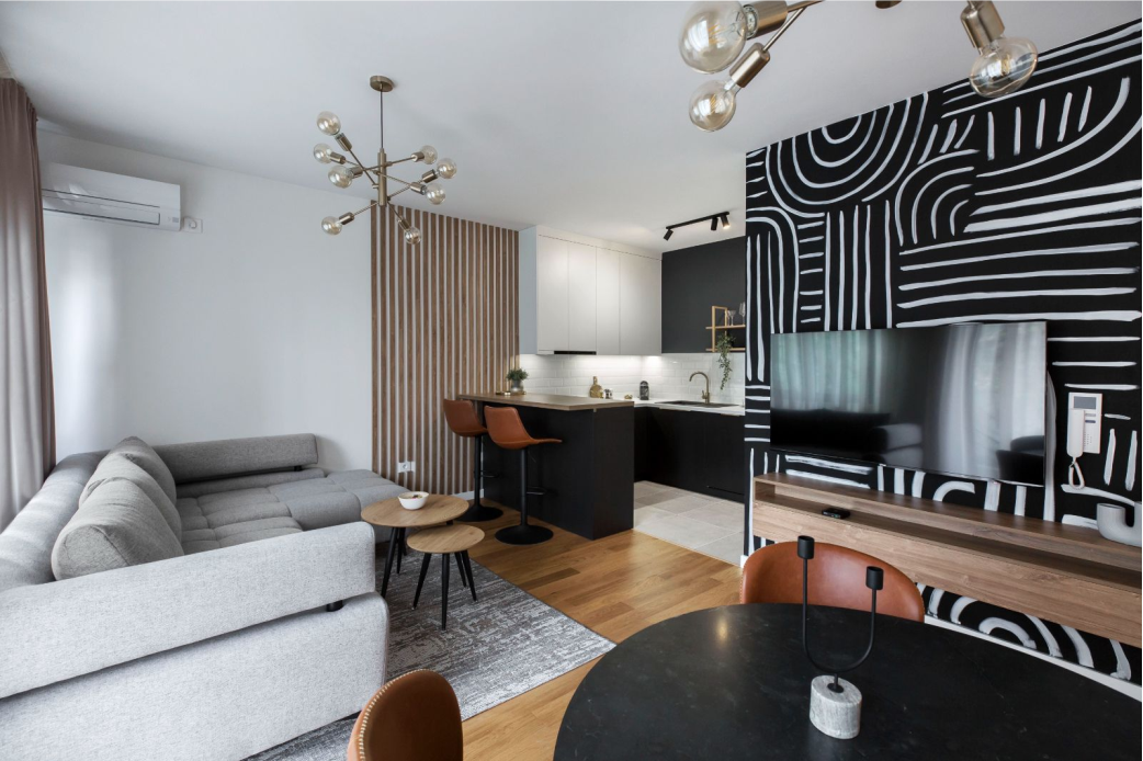 Poigravajući se sa paletom zemljanih tonova akcentovanim hrabrim potezima crne i bele boje, arhitekte Arhimetrik studija kreirale su drugačije čitanje tipske strukture stana.